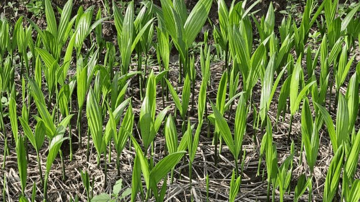 - Khi mầm cau phát triển, loại bỏ lưới đen để cây có thể tiếp xúc với ánh sáng tự nhiên và phát triển lá.