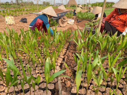 - Khi cây cau đạt chiều cao nhất định, có thể trồng ra vườn hoặc bán giống.